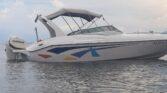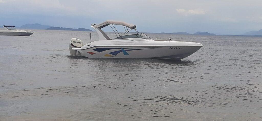 IPO DE EMBARCAÇÃO: LANCHA DE FIBRA MARCA: MAGNA 26 COR: COR BRANCA COM FAIXAS AZUL E AMARELA BOCA: 2,65 TRIPULAÇÃO: 1+10 ATIVIDADE: ESPORTE E RECREIO ÁREA DE NAVEGAÇÃO: MAR ABERTO COMPRIMENTO TOTAL: 8,06 ANO: 2015 MOTOR DE POPA EVINRUDE 300 HP COM APENAS 90HS ANO 2015 ESCADA DE INOX TRÊS ALÇAS DE INOX TANQUE DE COMBUSTIVEL 190 LITROS BOCAL DE ABASTECIMENTO INTERNO DOIS PORTA VARA DE INOX ANTENA VHF…