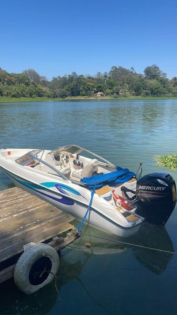Lancha revisada, com carretinha rodoviária e churrasqueira