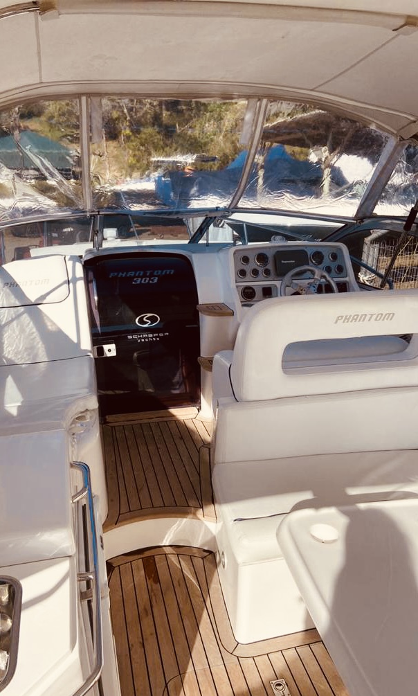 Phanton 303 em excelente estado. Lancha revisada. Dois motores de 170 Hp. Flaps elétricos, GPS Raymarine, fogão à gás, televisão, microondas, banheiro e vaso elétrico, sistema de combate à incendio, etc.